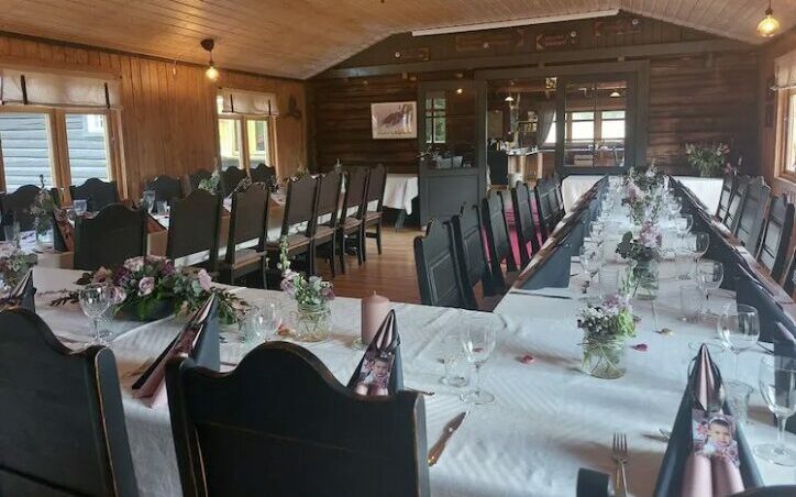 Lokalene er enkle og intime med plass til ca 40 gjester og passer fint til for eksempel konfirmasjon, julebord og andre lag.